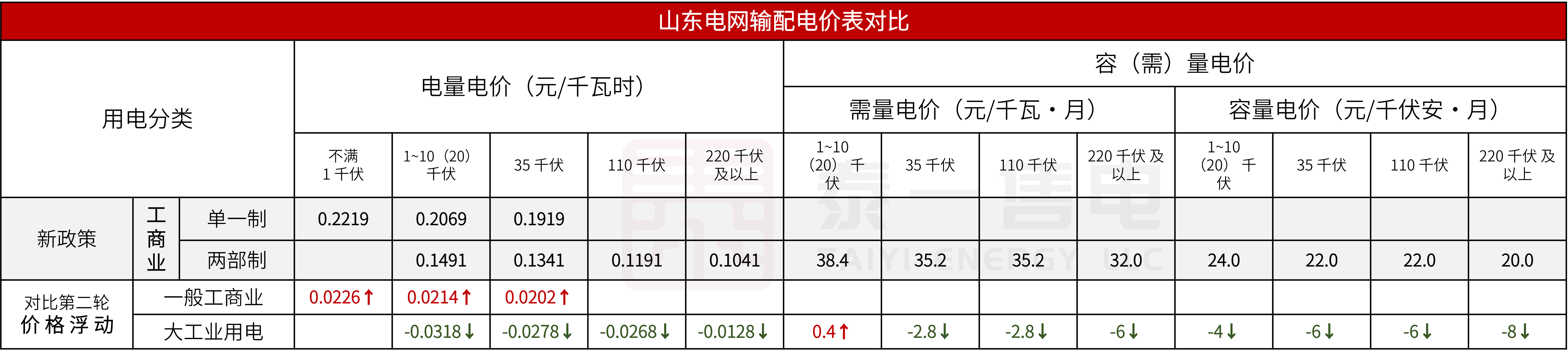 ▲新山东电网输配电价表
