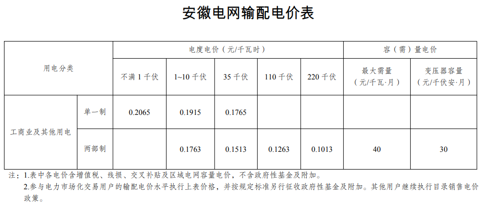 💡安徽输配电价变化情况一览表💡